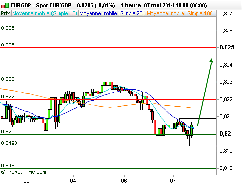 Une fois la zone de résistance à 0.8230 GBP franchie, la voie s'ouvrira en direction des 08250 GBP, sans obstacle technique majeur.